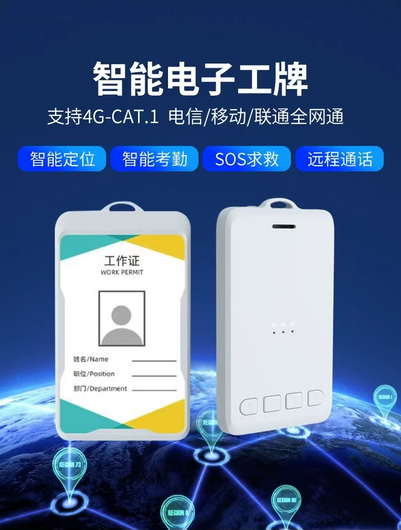 GPS/北斗定位胸卡(YJ-BDSGPS-01)也叫智能工牌,具有GPS/北斗/RTK多模定位,重量轻、续航时间长。有实时定位、一键呼救,双向通话,电子围栏,报警等功能。