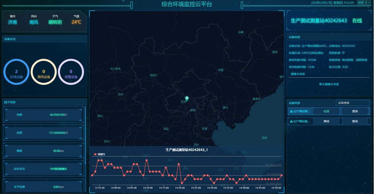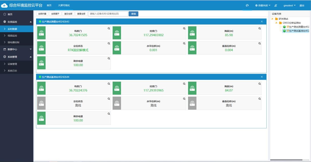 本系统施工部署非常简便,细节考虑周到,扩容方便。基准站与测量站之间采用RJ45/4G无线通讯的传输方式,并将采集到的位移、位置等信息实时传输至综 合环境监控云平台,不仅无距离限制,还避免了铺设线路的麻烦,监控管理平台也非常人性化,界面友好、操作简单、功能全面。