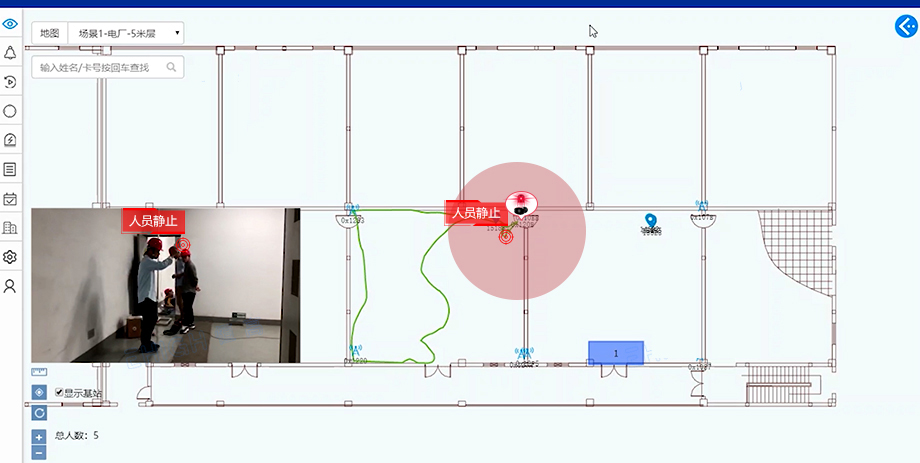 ◆ 实时人员位置跟踪,统计人员位置、区域人数和分布热力图;