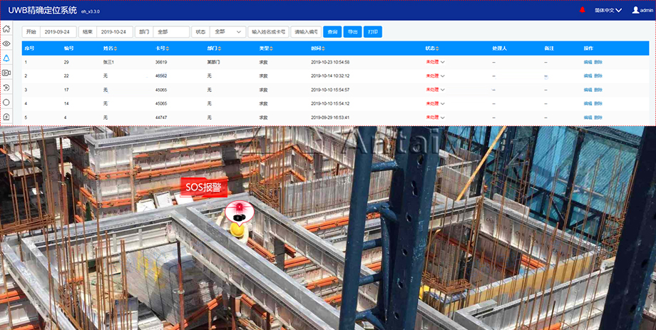 ◆ 施工人员可通过定位标签按键向系统发送SOS报警信息,实时告警;